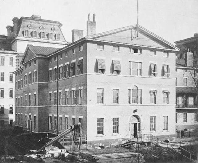 Of the 131 federal workers who moved to Washington, over half of them (69) were housed in the new Treasury building. The building for the State Department on the other side of the White House was not completed until 1801 and the Treasury building served as the temporary home to the State Department for 3 months.