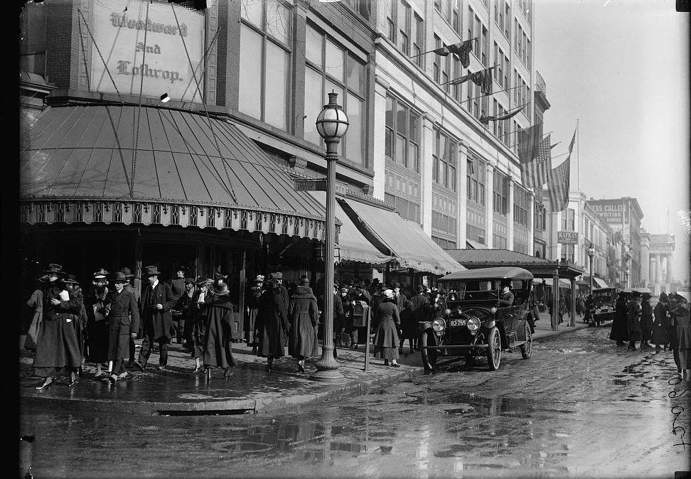 Starting as the “Boston Dry Goods House,” Woodward, Lothrop, and Cochrane stood out from other merchants in the District at the time with its then-revolutionary model of “one price.” Prices were fixed and no negotiation was ever required. Another innovative practice that they introduced was that customers could also return products they were unsatisfied with for cash refunds, not just store credit. Woodward and Lothrop also began the first clearance sales, which they called “Remnant Day,” selling unsold merchandise at a discount.