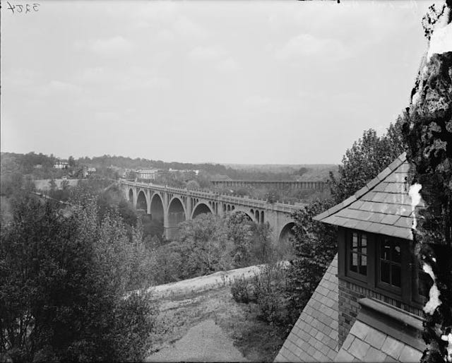 A stately house known as “Tanglebank” once stood on the present site of the Chinese Embassy Chancery at northwest corner of Connecticut Avenue and Kalorama Road, NW. It was built by landscape painter Parker Mann in 1887 and was also the early childhood home of prominent Washington architect Arthur Cotton Moore.