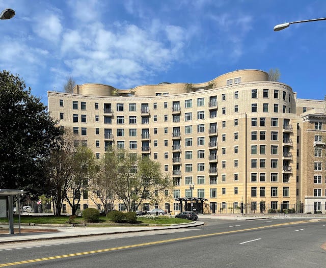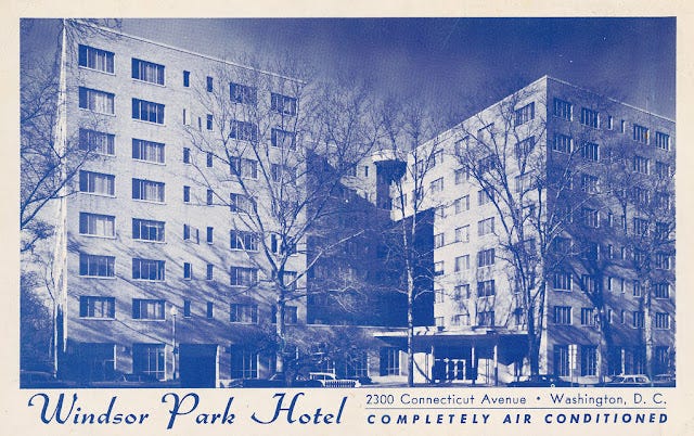 Olive McLean died at Tanglebank in 1941 at the age of 59. In 1946, developer Louis Mantague acquired Tanglebank and announced his plans to construct an 8-story hotel on the site. In 1948, the Windsor Park Hotel opened for business. (Note: In 1962, Mantague also “gifted” the neighborhood with construction of the Rock Creek Motel at 2401 20th Street.) The Chinese government acquired the Windsor Park Hotel in 1973 for use as its embassy chancery and staff residence. The also acquired the building immediately to the north, the St. Alban's Apartment House.
